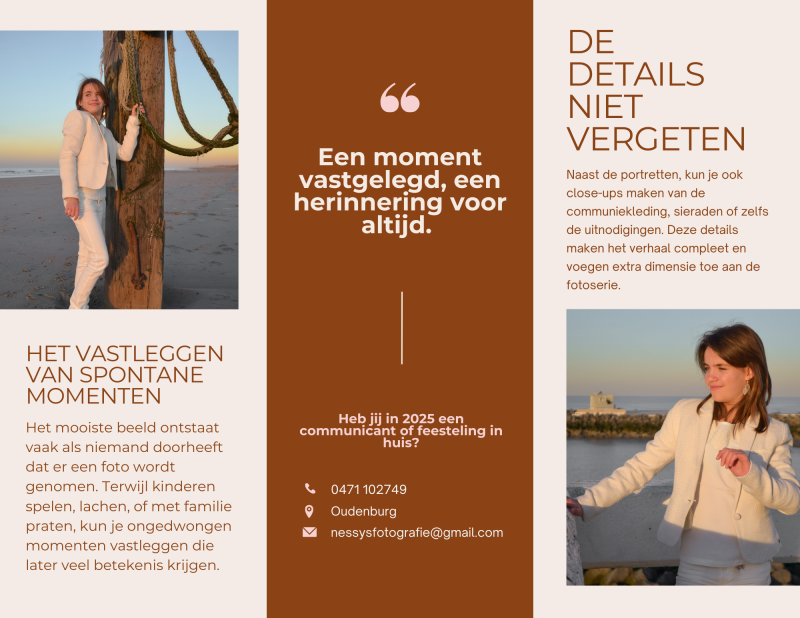 Bent u op zoek naar betoverende foto’s voor de communie of het lentefeest van uw dochter of zoon? Neem dan vandaag nog contact op met mij en reserveer uw datum op tijd!